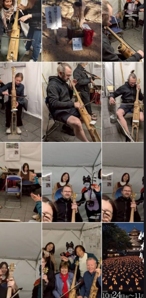 初めて竹の弦楽器に触れる外国人の方々も多く、その響きに目を輝かせながら夢中で演奏する姿が印象的でした。